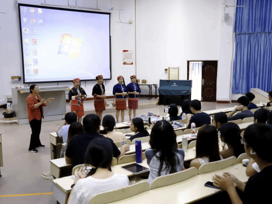 11月7日下午,海南大学《非遗传承·黎族特色文化》人文通识课在2号教学楼108教室开展。课程负责人王熙特邀国家级非物质文化遗产项目黎族传统纺染织绣技艺代表性传承人刘香兰、省级传承人黄忠英、市级传承人黄燕欢与黄珠玲,以“纺染织绣”四大工艺为核心,搭配黎族祝酒歌互动体验,让千年黎锦文化在沉浸式课堂中焕发新生。