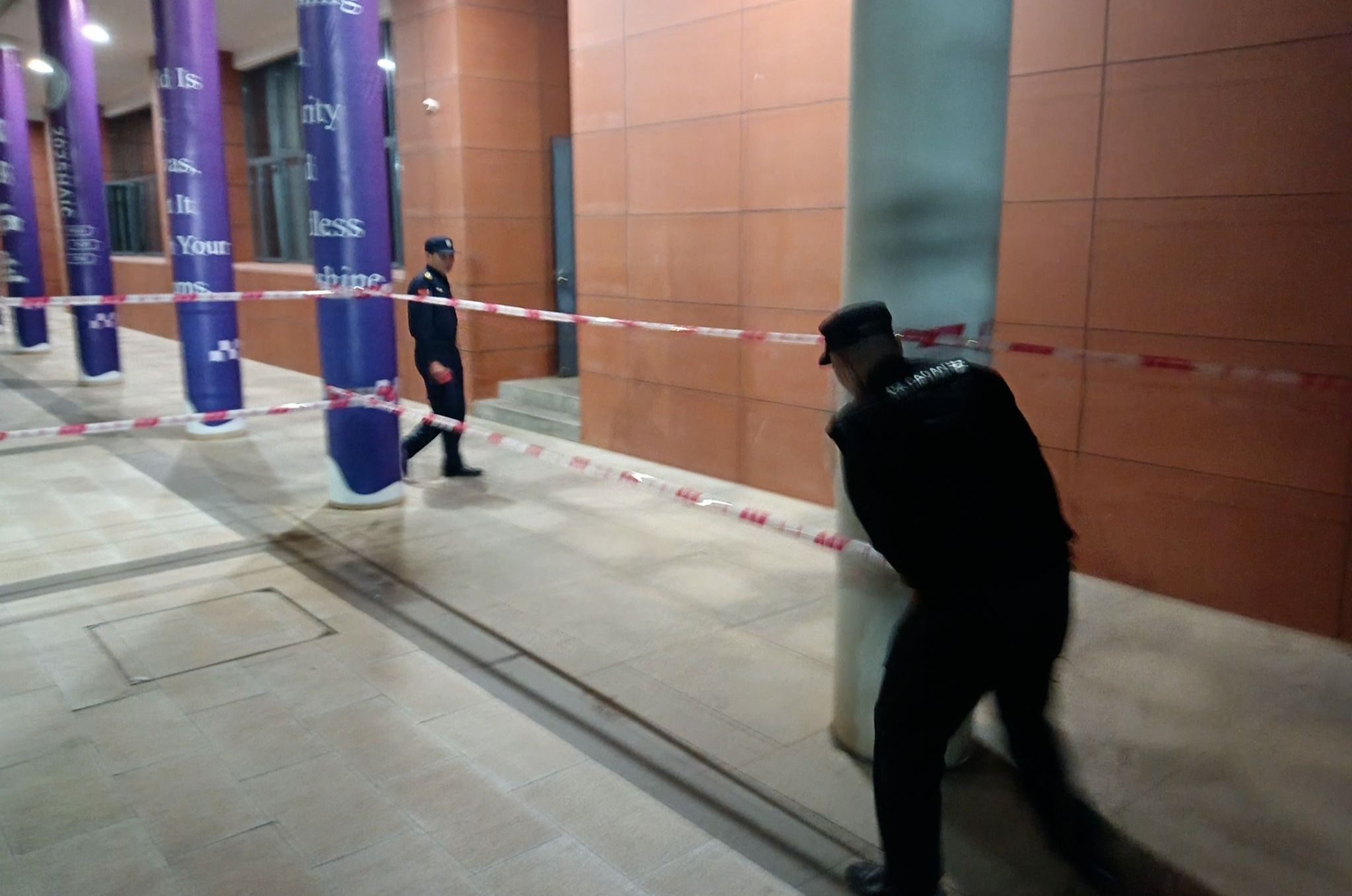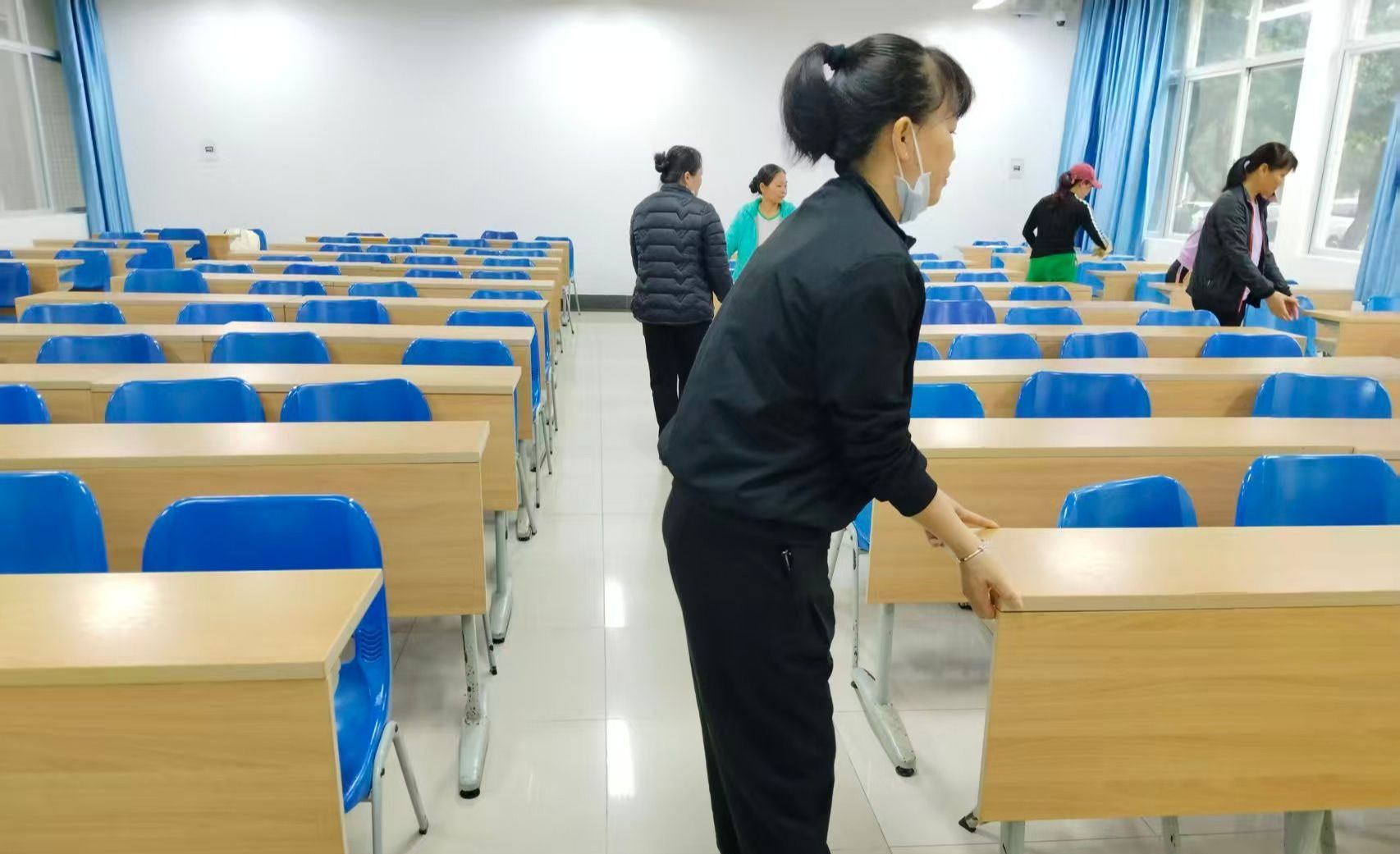 后勤组在清洁考场 保卫组在考场外布置拉线