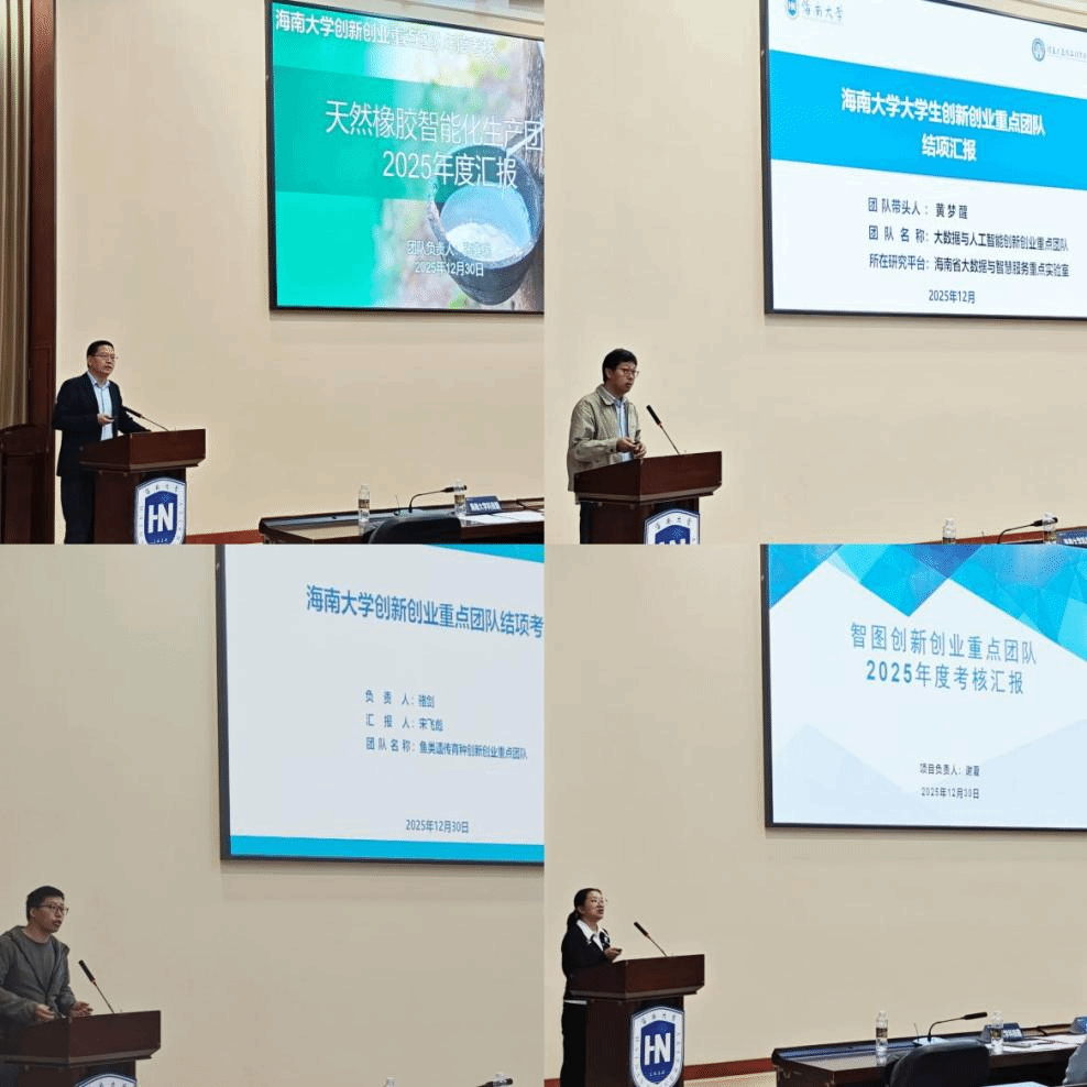 12月30日上午,海南大学创新创业重点团队2025年考核评审会在思源学堂多功能厅举行。本次评审会由本科生院(创新创业学院)组织,人文社科处、人事处、研究生院、学生工作部、海南大学科技园、团委等相关职能部门参与评审,并特邀中南大学国家创新创业示范基地主任杨芳教授担任评审专家。