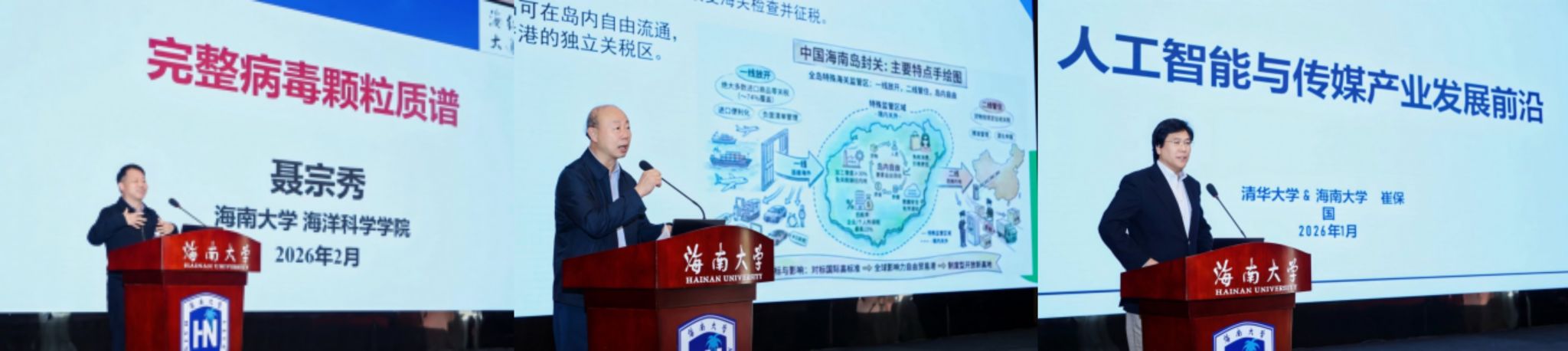 海南大学学术副校长聂宗秀、张法连,清华大学教授、海南大学特聘教授崔保国、食品科学与工程学院院长张家超、机电与工程学院党委书记张喜瑞、生物医学工程学院教授殷明、人文学院教授海滨,分别聚焦“热带海洋科技”“自贸港发展与制度创新”“人工智能与传播前沿”“生命健康”“智慧农机”“脑机接口”“东坡文化”七大主题作了精彩报告。教授们凭借深厚的学术造诣和丰富的实践经验,为同学们带来了一场融汇科技前沿与人文底蕴的学术盛宴。从海南自贸港政策解读到前沿科技发展趋势,从创新思维培养到实践能力提升,每一个主题都紧密贴合时代需求,激发了同学们对科学知识的强烈渴望和深入思考。教授们深入浅出的讲解,让复杂的理论变得通俗易懂,使同学们在轻松愉悦的氛围中汲取知识养分,拓宽了学术视野,点燃了探索未知的热情。