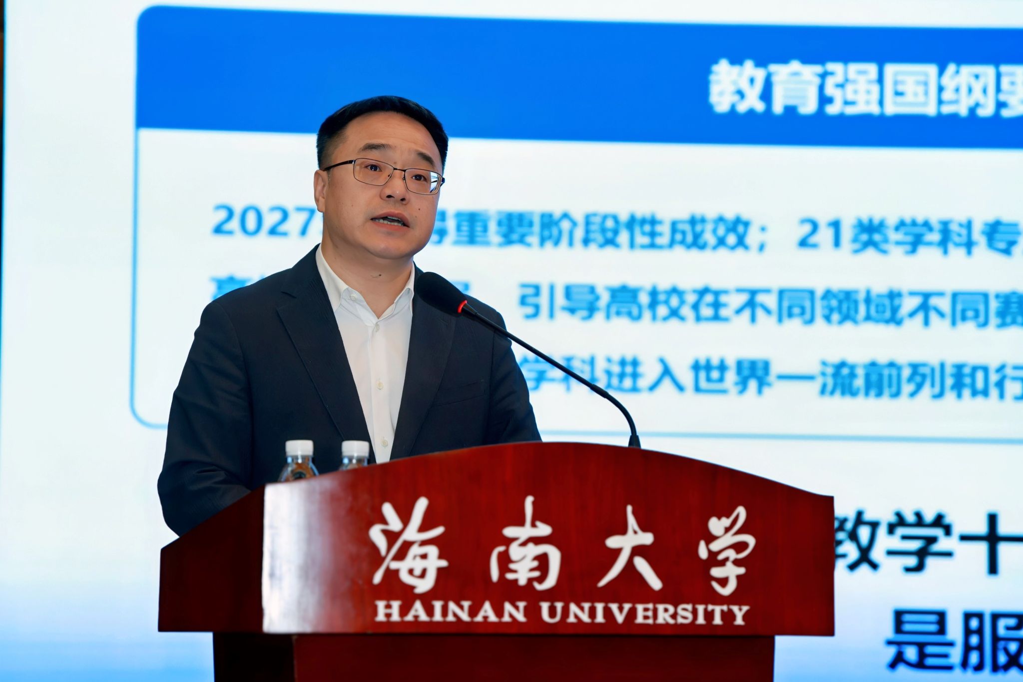 会上,学校党委常委、副校长、本科生院院长刘谦代表本科生院汇报了学校本科教育教学“十五五”专项规划并部署了2026年重点工作。他从规划背景、机遇挑战、总体思路与目标、重大任务四个维度进行系统阐述。刘谦指出,“十五五”时期是学校实现2035年迈入世界一流大学行列目标的关键期,本科教育教学将以坚持内涵式发展为主线,以提升教师教学水平和人才培养质量为核心,以一流本科教育全面提升计划为抓手,重点实施十二项重点任务,全面深化完全学分制改革:一是建好新时代立德树人工程;二是形成高度适配自贸港建设发展的学科专业结构动态调整机制;三是构建面向“四个未来”的数智化体系;四是拔尖创新人才培养发现培养机制;五是推进人才培养核心要素提质创新;六是海南大学高质量教师教学发展体系;七是全面深化创新创业教育改革;八是培育、建成一批国家级教育教学平台;九是全面建成“大质保”理念下的本科教育教学质量保障体系;十是构建“1513”高质量招生工作体系;十一是打造高效内部治理体系;十二是全面实现专业责任教授制度。刘谦特别强调,本科教育是学校建设世界一流大学的决定因素和关键变量,“十五五”期间聚焦“三大改革”,系统实施一流本科教育全面提升计划,强化数字赋能,任务驱动,真抓实干,全面深化本科教育内涵建设,一年接着一年干,将制度创新的“试验田”,变为改革实践的“示范区”,努力培养新时代拔尖创新人才,为教育强国制度创新贡献“海大方案”,为海南自由贸易港建设贡献“海大力量”。