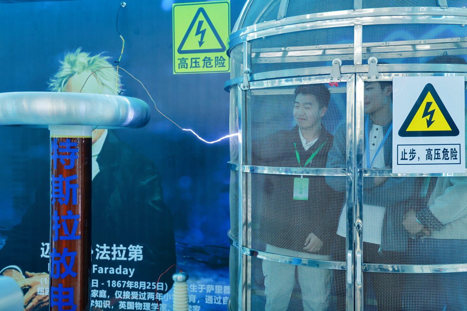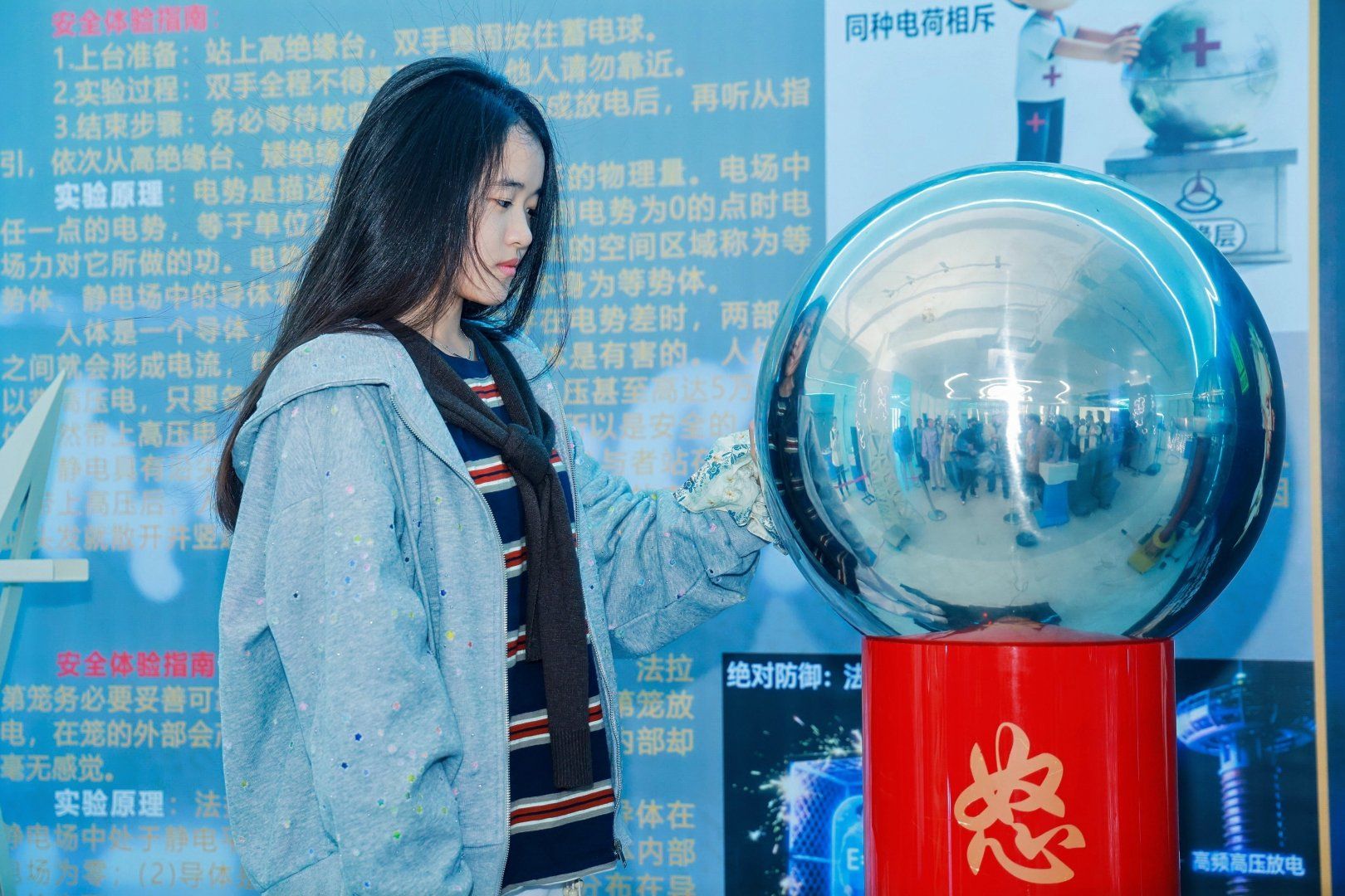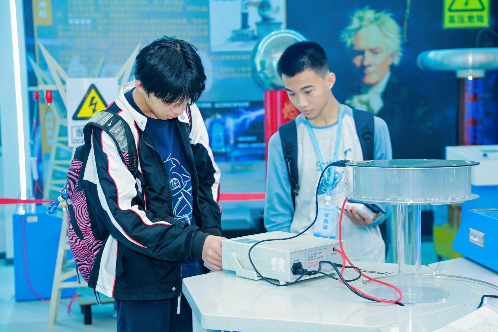 在老师的带领下,同学们分组参观了物理演示与探索实验室和光学实验室,近距离观察并亲手操作了静电跳球、怒发冲冠、手触电池、击鼓共振、脚踏发电、空气炮、法拉第笼及特斯拉线圈等十余项趣味物理实验装置。通过动手实践和现场讲解,将抽象的物理原理转化为直观的体验,现场气氛热烈,惊叹声不断。